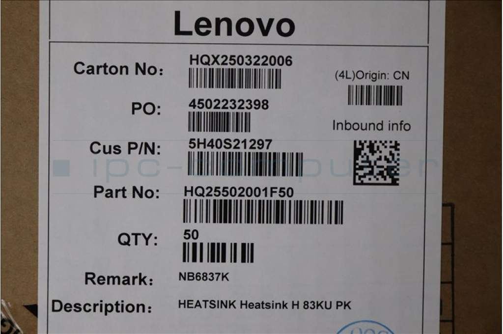 Lenovo 5H40S21297 HEATSINK Heatsink H 83KU PK