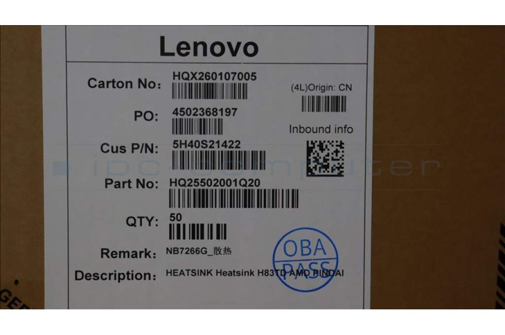 Lenovo 5H40S21422 HEATSINK Heatsink H83TD AMD PINDAI