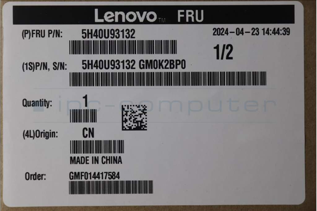 Lenovo 5H40U93132 HEATSINK FRU DIS FAN