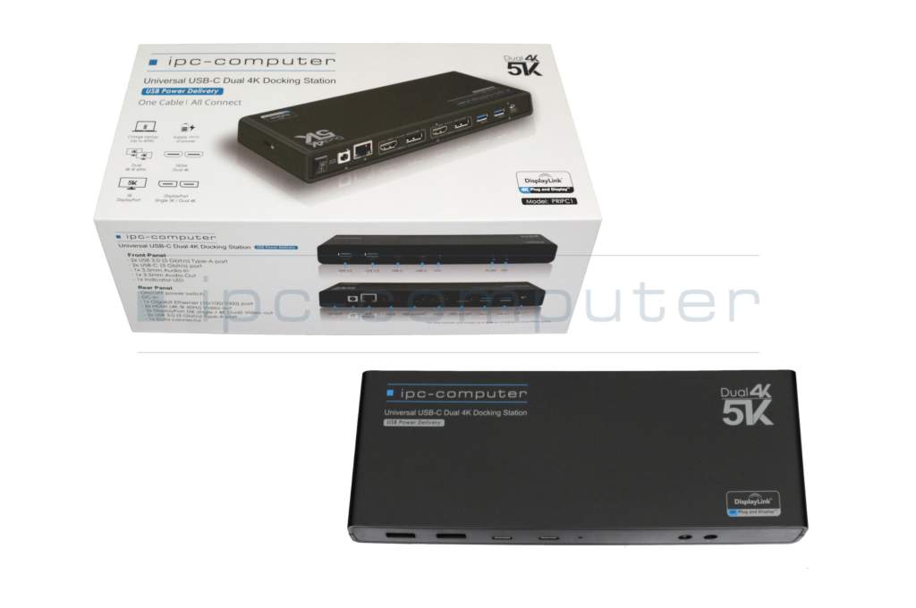 Le PRIPC1 ne manque pas non plus de spécifications. Une caractéristique remarquable est la prise en charge de jusqu'à deux moniteurs 4K/2K. Alternativement, il prend également en charge la connexion d'un moniteur 5K. Le taux de rafraîchissement est de 60 Hz. De plus, ses nombreuses connexions vous permettent de connecter des accessoires selon vos envies. Le réplicateur de ports IPC dispose de 4 ports USB 3.0 pour la souris, le clavier, l'imprimante et d'autres équipements. Ses deux ports USB-C complètent les nombreuses options de connectivité.