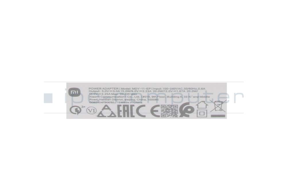 Xiaomi Redmi 9 original Chargeur USB 22,5 watts EU wallplug blanc (Charging Combo Type A) (sans câble)